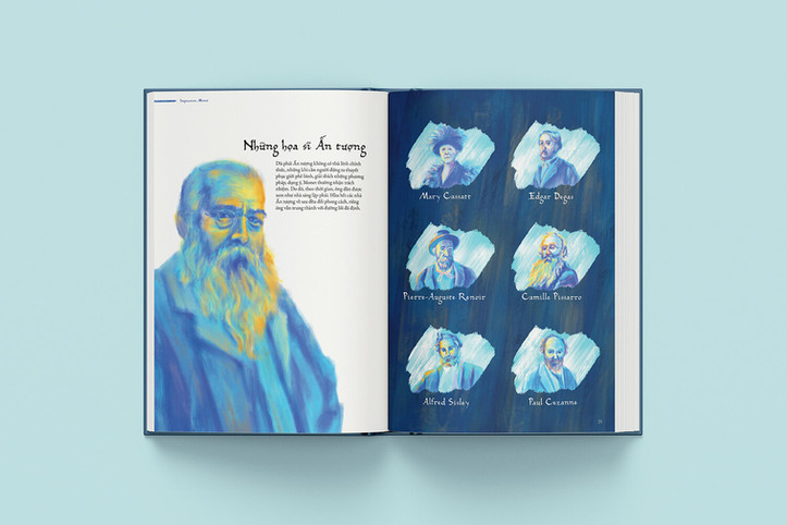 “Impression, Monet” là sách minh họa về cuộc đời của Claude Monet - họa sĩ tiên phong của trường phái hội họa Ấn tượng Pháp. Tựa đề cuốn sách bắt nguồn từ tên bức tranh phong cảnh nổi tiếng “Impression, sunrise” (Ấn tượng, mặt trời mọc) của danh họa. Để tái hiện lại phong cách vẽ của Monet, mình dùng những màu sắc dựa trên những bức tranh phong cảnh của tác giả và sử dụng phương thức digital painting để diễn tả bề mặt tranh sơn dầu. Đây là một thử thách khó khăn khi lần đầu tiên mình thử nghiệm phong cách vẽ này. Do hạn chế về thời gian nên bản thân đồ án này vẫn chưa phải là một cuốn sách minh họa hoàn thiện đầy đủ cuộc đời và sự nghiệp của họa sĩ Claude Monet, xin mời mọi người đón xem một số lát cắt cuộc đời của danh họa trong đồ án “Impression, Monet” sau đây.