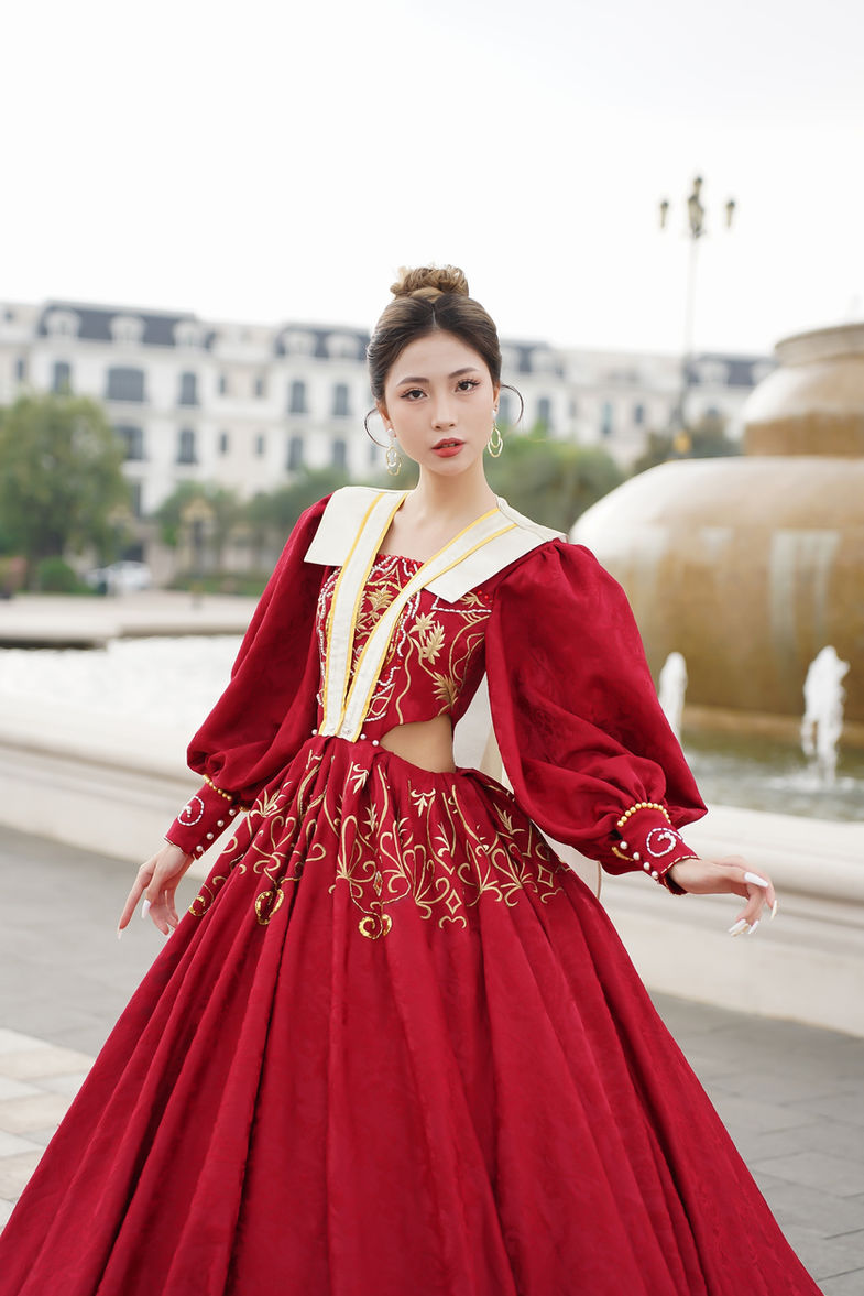 Bộ sưu tập mang tên “ QUEEN” lấy ý tưởng từ trang phục thời kỳ Phục Hưng, là dạng trang phục dành cho tầng lớp quý tộc chính vì vậy mà trang phục thể hiện nét quyền uy, giàu sang. Bộ sưu tập “ QUEEN” sử dụng những kỹ thuật như tạo bề mặt chất liệu, đính kết và thêu để tạo điểm nhấn cho trang phục. Những thiết kế mới dựa trên trang phục cũ của thời kì này, để làm nên bộ sưu tập với điểm nhấn là phần eo ôm sát tôn lên vẻ đẹp cơ thể, điểm mới là thay đổi kết cấu conset, phần tay và tầng lớp của váy, đề cao về tinh thần hội nhập giao lưu văn hóa Đông –Tây.