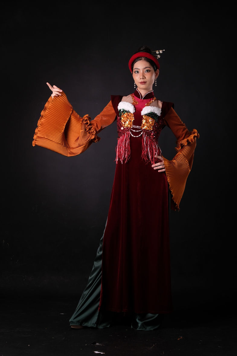 Những giá trị truyền thống chính là cốt lõi của hiện tại và tương lai nên đó từ lâu đã trở thành nguồn cảm hứng vô tận của nghệ thuật, với ý nghĩa muốn đem những giá trị văn hóa truyền thống dân tộc đến gần hơn với cuộc sống thường nhật, đến gần hơn với thế hệ Gen Z, bộ sưu tập “Vọng Nguyệt” ra đời. Đây là sự kết hợp giữa sự duyên dáng của tà Áo dài cùng màu sắc nhộn nhịp của đêm rằm Trung thu và đặc biệt là tục múa Lân, được xem là một trong những hoạt động được mọi người mong chờ và không thể thiếu mỗi mùa trung thu về. BST được sử dụng kết cấu của tà áo dài truyền thống cùng những đường nét đặc trưng của hình ảnh Lân trung thu tạo nên hình ảnh Tà Áo dài vừa có nét riêng vừa có nét truyền thống nhưng cũng vừa mang lại sự hiện đại, sang trọng và ứng dụng trong trang phục dạ hội.